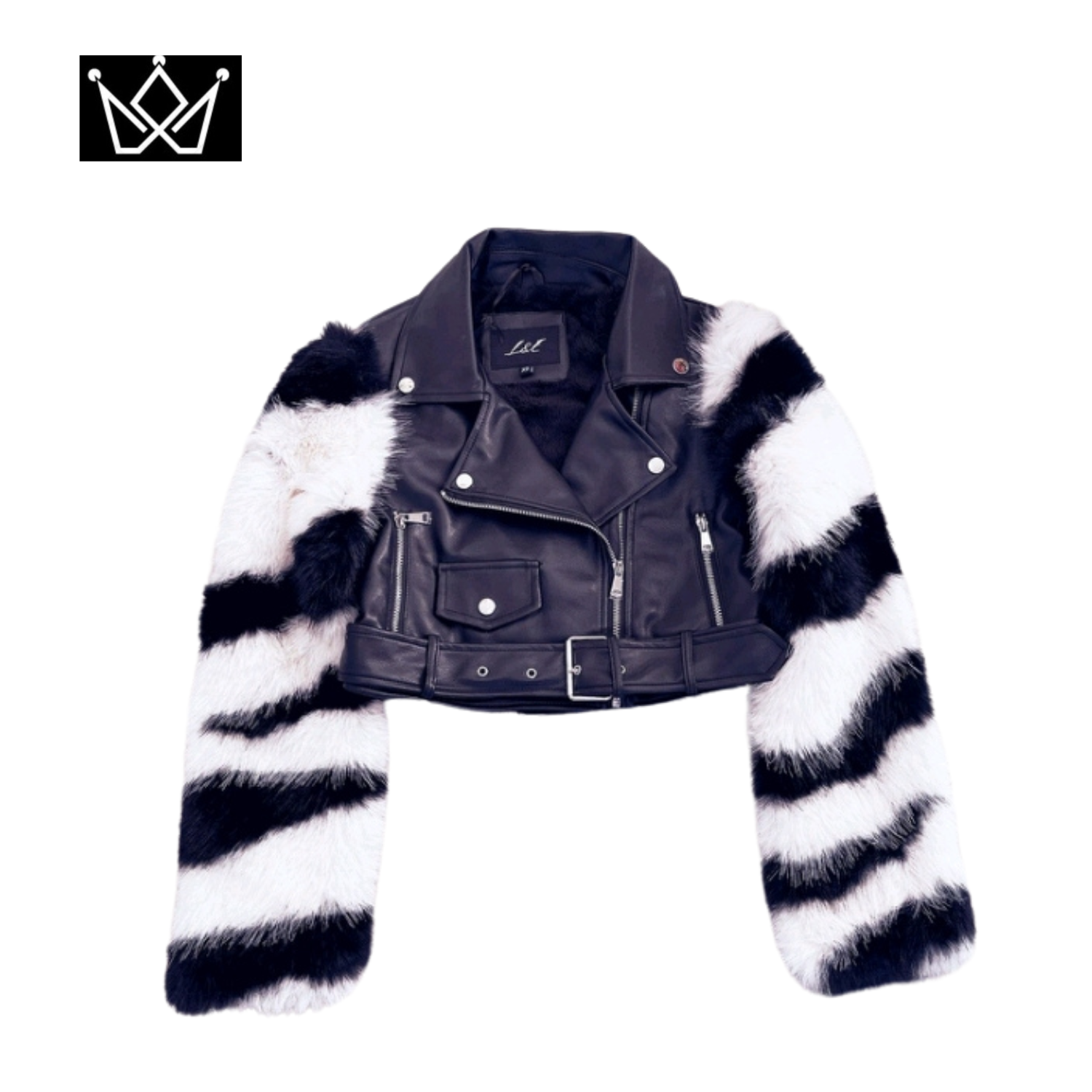 • Mangas largas con un diseño distintivo de rayas blancas y negras de pelo sintético.